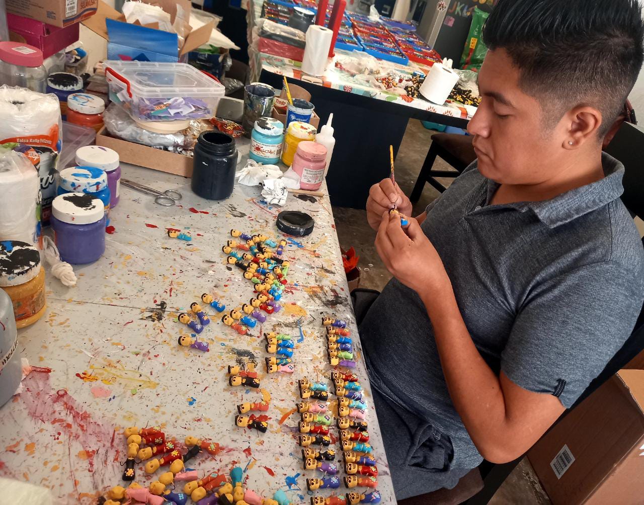 The creation process at Casa Calavera is a harmonious blend of individual expertise and collaborative effort. Each artisan contributes their unique skills to the process, ensuring that each piece is a masterpiece of craftsmanship. From manipulating clay into expressive forms to meticulously painting and detailing boxes and niches, the artisans at Casa Calavera pour their passion and dedication into every step.