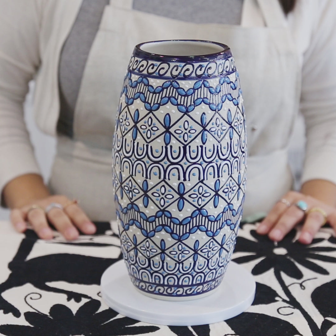 Coyoacán Hand-Painted Cylinder Ceramic Vase
