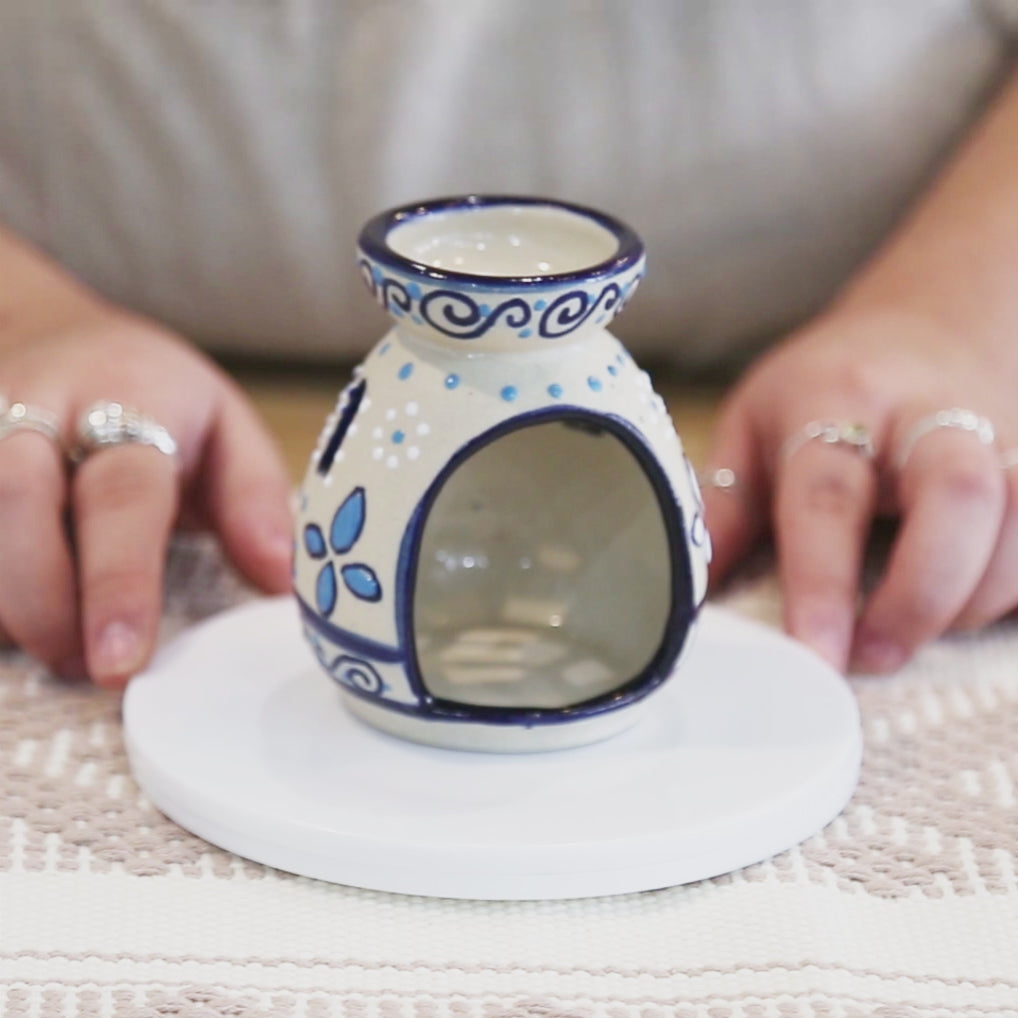 Not microwave or dishwasher safe. Store in a cool, dry place. Handwash with mild soap and water, avoiding abrasive scrubbers to protect the hand-painted designs. Dry thoroughly before storing. Avoid extreme temperature changes to prevent cracking. Handle with care to prevent chips and breakage.