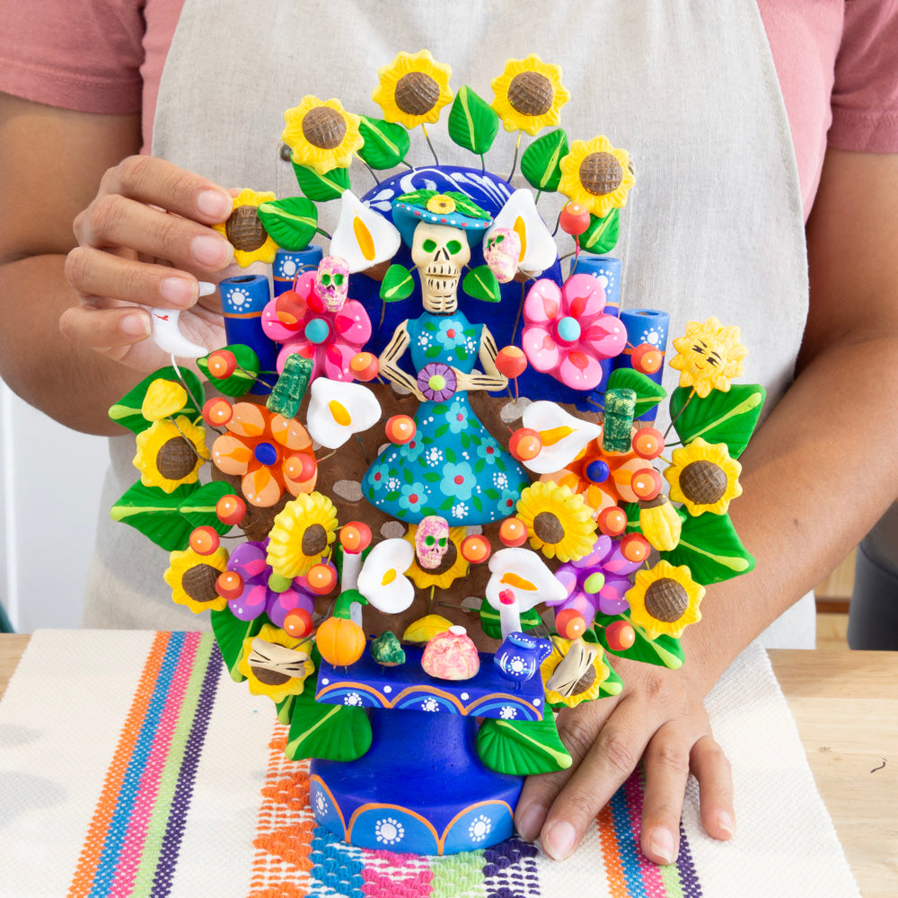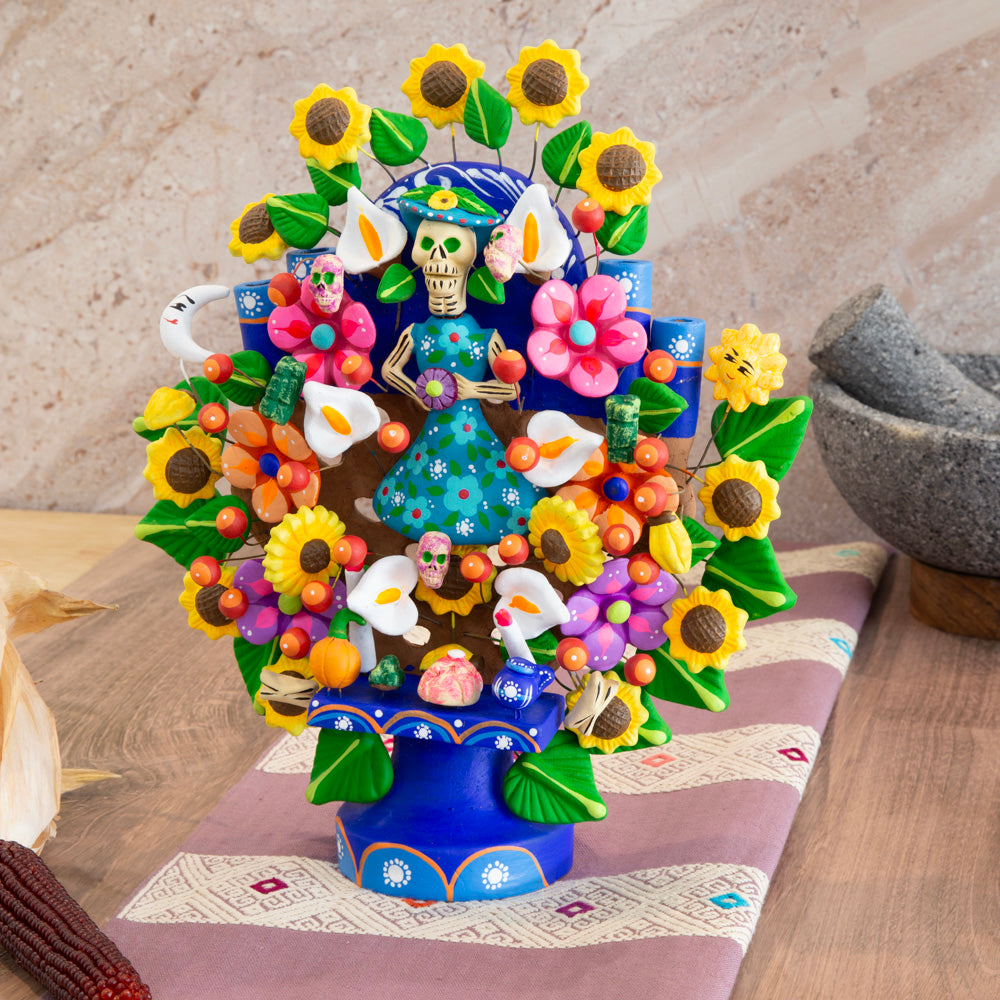 Day of the Dead Tree of Life Sculpture is beautifully created by a talented artist. the detail is exquisite. The various colors are perfectly selected. It sits on my dining table on top of the blue and yellow table runner also purchased from Lolo Modern Mexican Mercadito.