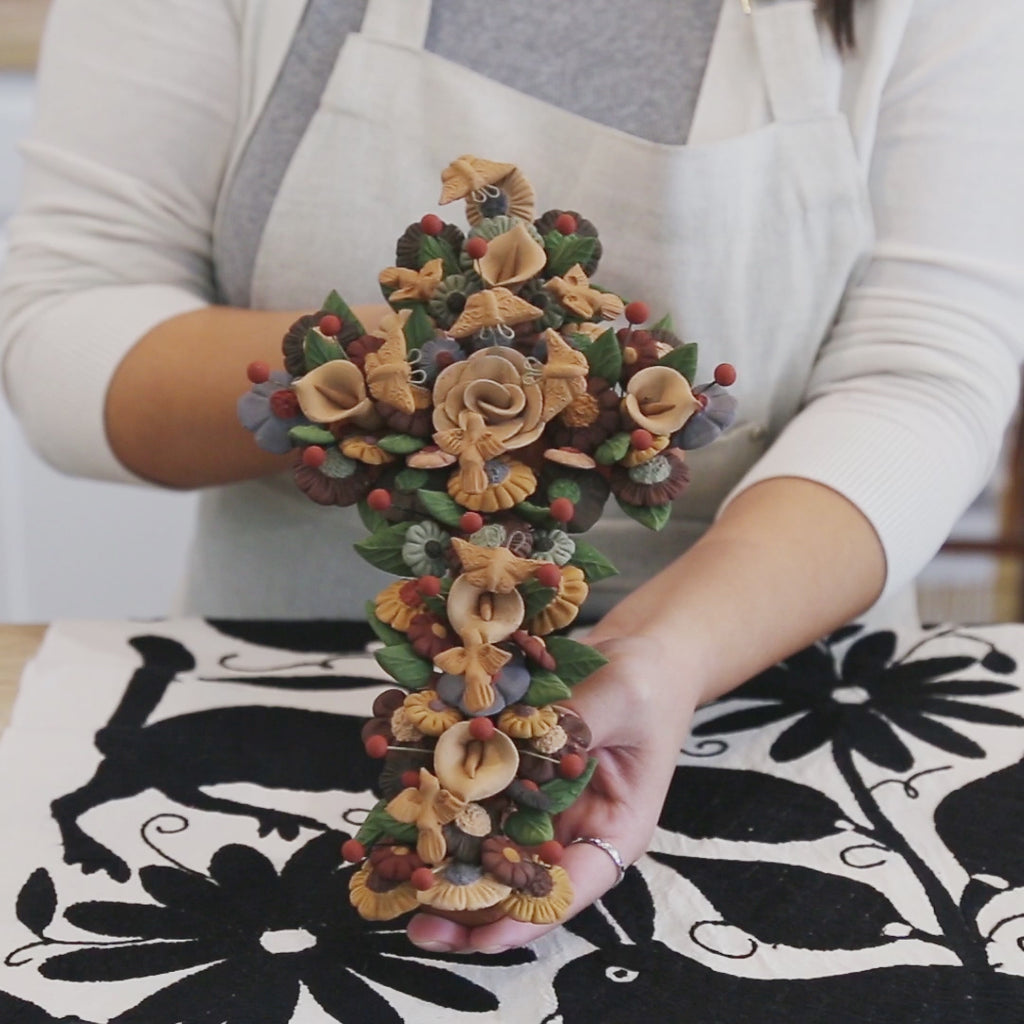 Large Floral Cross Barro Pigmentado Clay Wall Art
