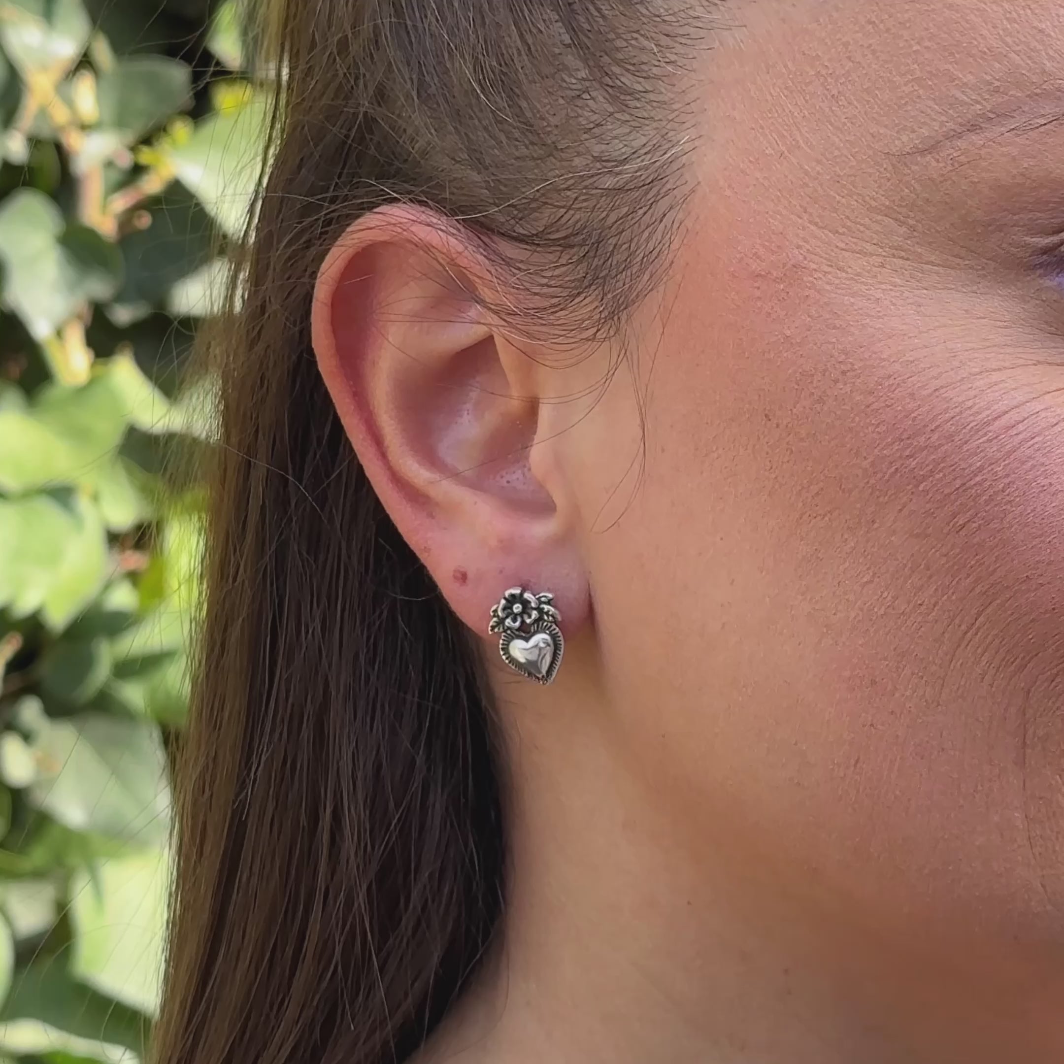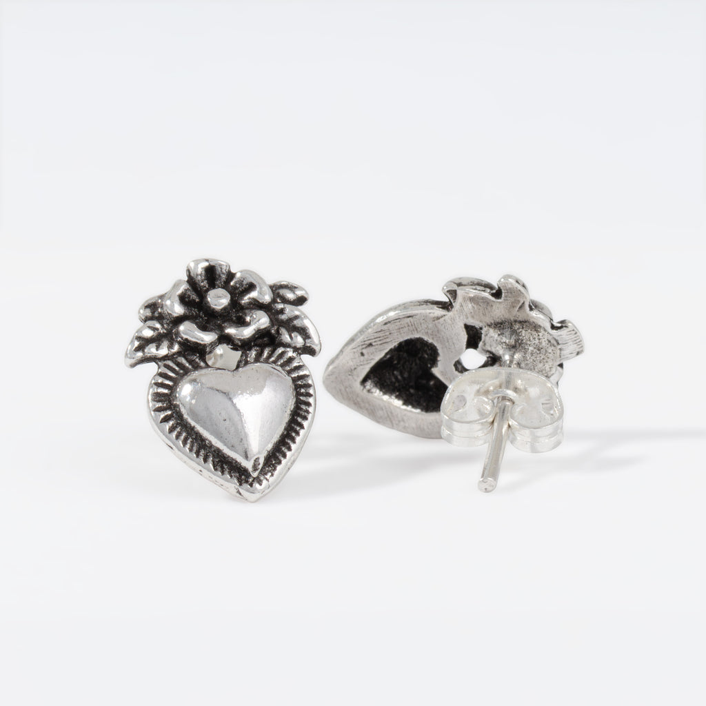 Sterling Silver Corazón de Flor Earrings