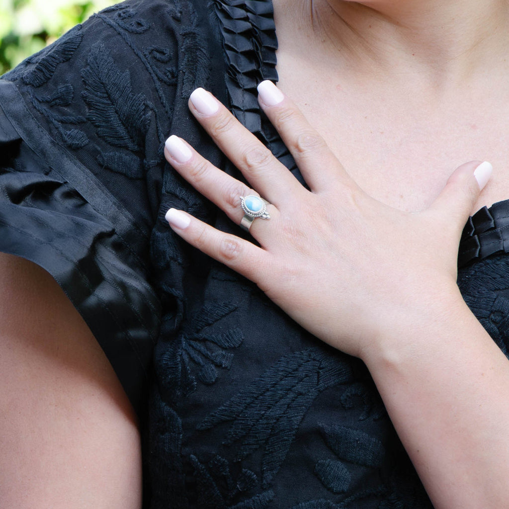 Sterling Silver Portrait of Larimar Ring