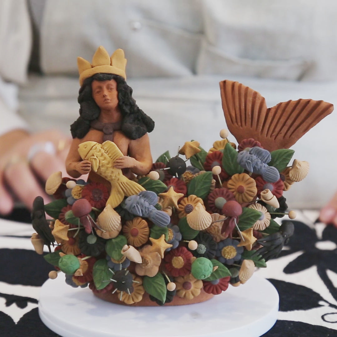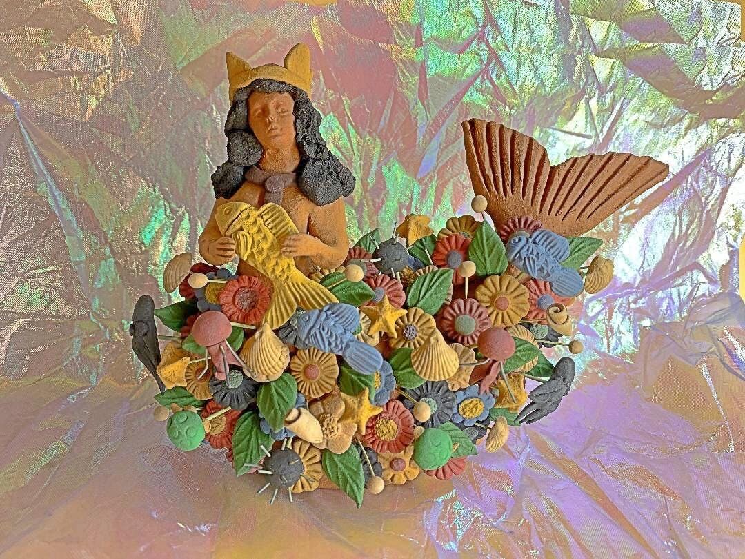 Tlanchana Barro Pigmentado Mermaid Clay Sculpture